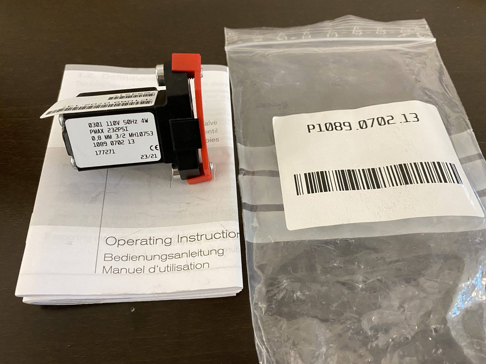 • Type: 0301 110V 50 Hz, 4W PMAX 232Psi/16 Bar